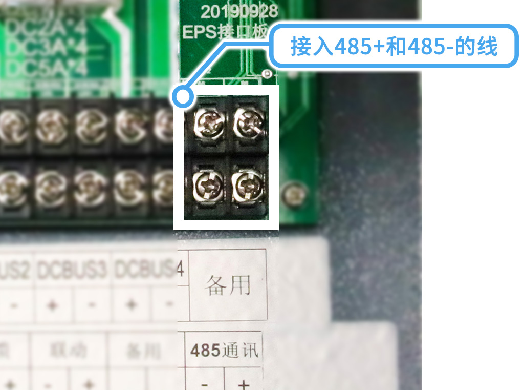 通信部分的主机通信:在以下2个端口接入485+(正)和485-(负)的线,注意不要接反;