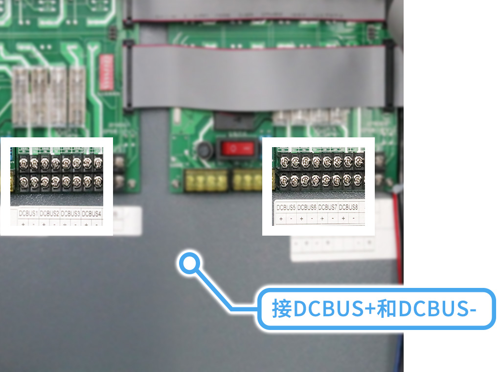 通信部分的灯具通信:出厂默认8个回路,采用二总线,接DCBUS+和DCBUS-;